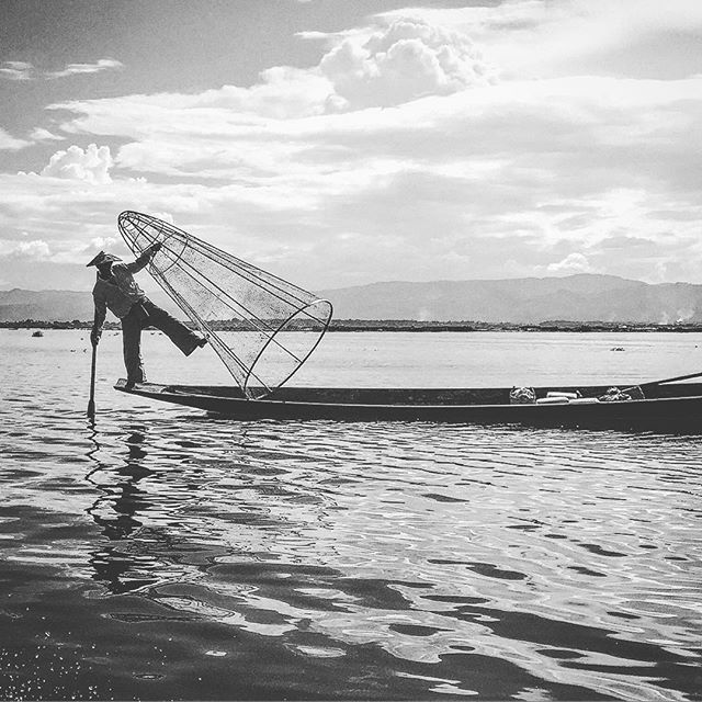 During the journey we passed local Burmese going about their daily lives, transporting goods, selling produce and shuttling themselves amongst the floating villages. Soon the waterways on which we were traveling opened up to a vast lake surrounded by rolling mountains. I continued to take photos, trying to capture the beauty of which my eyes were becoming accustomed to. Wow! This really was a photographers dream destination. It wasn’t long before we came across some local fisherman, unique in the way they fish the local waters. Using wire or cane nets they stand on the end of their long boats balancing with one foot while the other paddles the oar. It truly is a wonderful sight to see and it sure made some spectacular shots for my album.